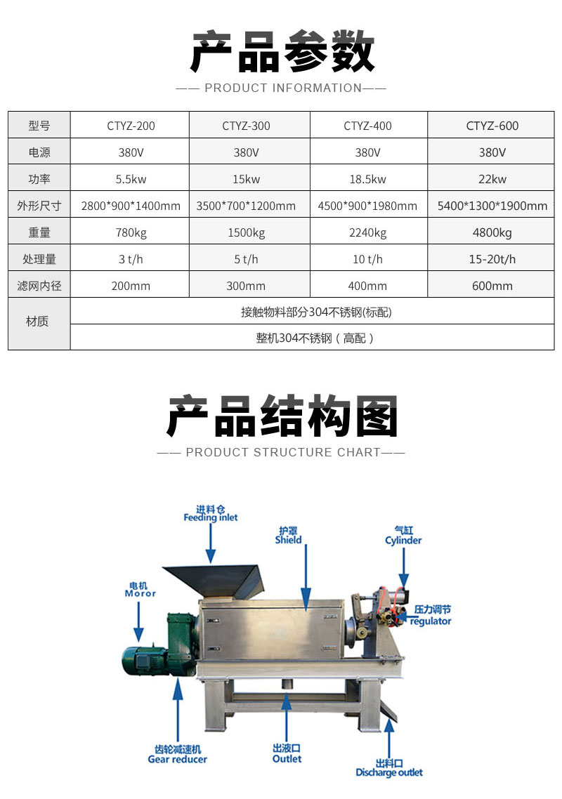 螺旋壓榨機(jī)關(guān)鍵部位噴涂耐磨層,螺旋絞龍葉片表面加焊一層合金刀頭,增加耐磨性;**部件采用304不銹鋼制作,耐酸耐堿耐腐蝕,從而大大延長設(shè)備使用壽命。