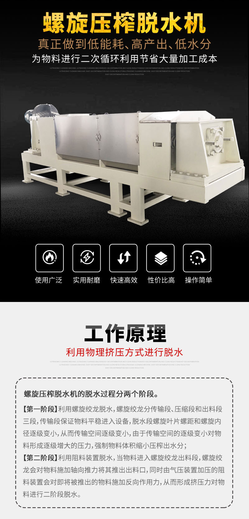 螺旋壓榨機(jī)采用物理擠壓脫水原理,脫水過程中無需額外提供熱源,相比同類烘干設(shè)備耗能極低。